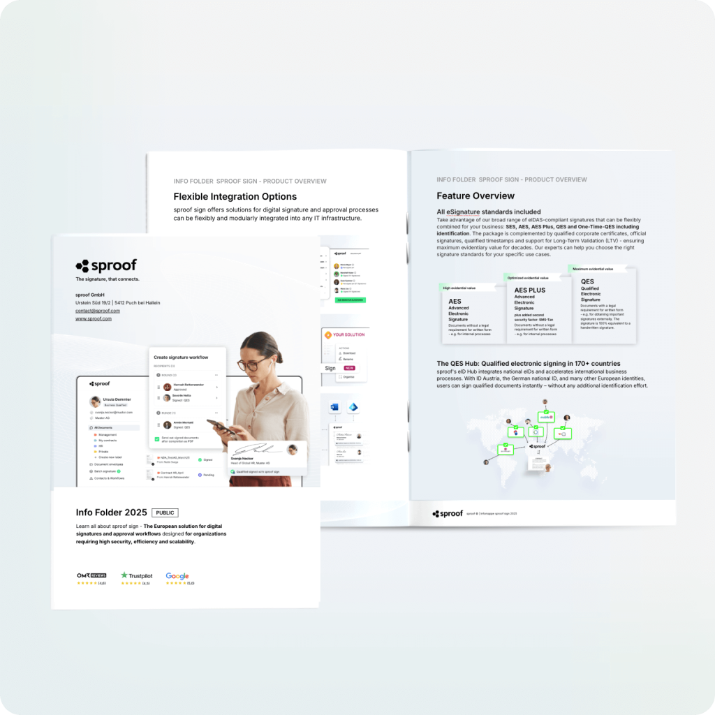 - Den anerkendte sammenligningsplatform european-alternatives.eu anbefaler sproof som et top-alternativ til digitale signaturer og identifikationsprocesser. Vigtige kontrakter og følsomme underskrifter forbliver i Europa for at sikre datasuverænitet og overholdelse af strenge databeskyttelsesregler.