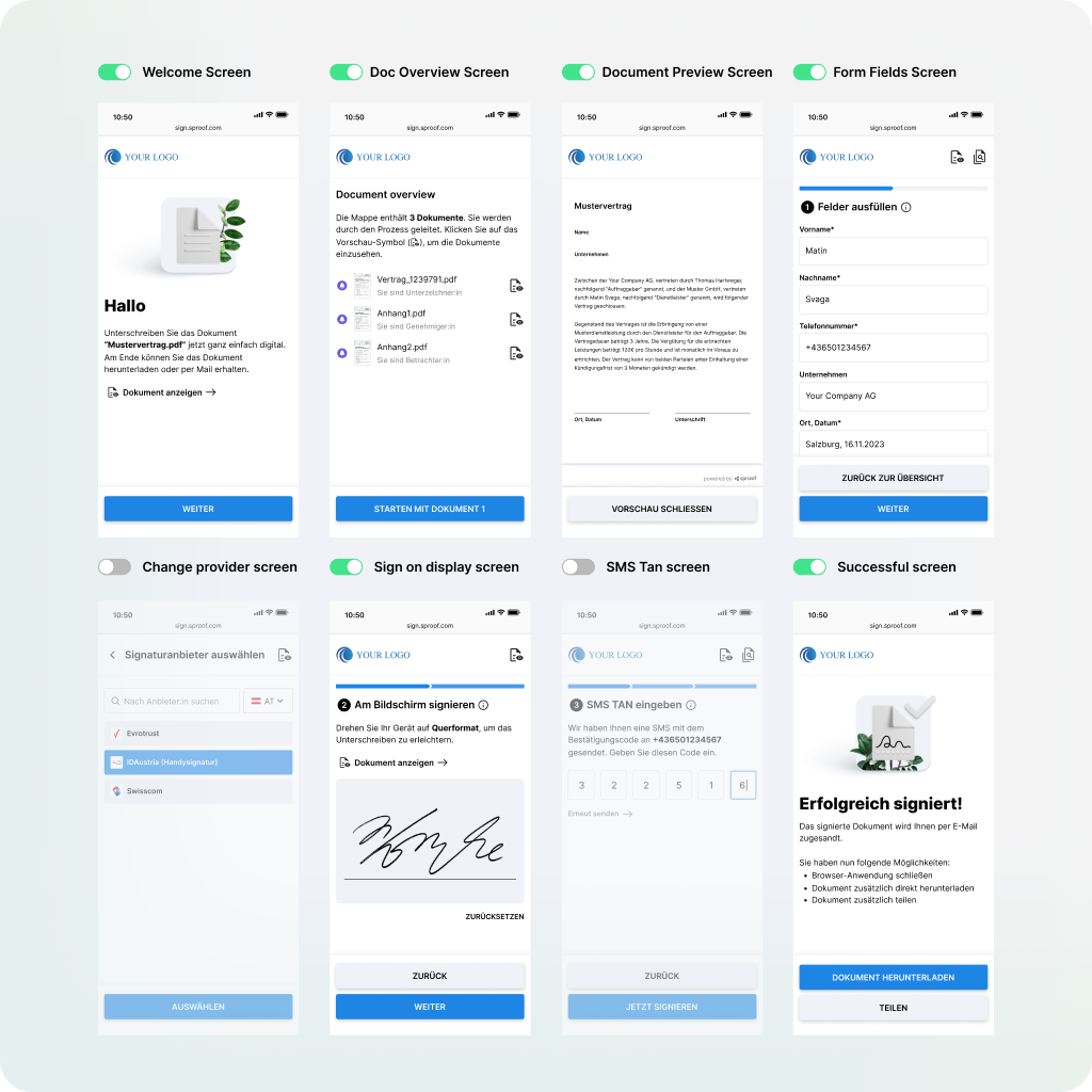 Ein flexibler, niederschwelliger und barrierefreier Prozess in Ihrem Corporate Design ermöglicht hohe Abschlussraten durch optimale User Führung und User Experience. Eine Kopie des unterschriebenen Vertrages oder der übermittelten Daten wird den Empfänger:innen per E-Mail zugesandt.