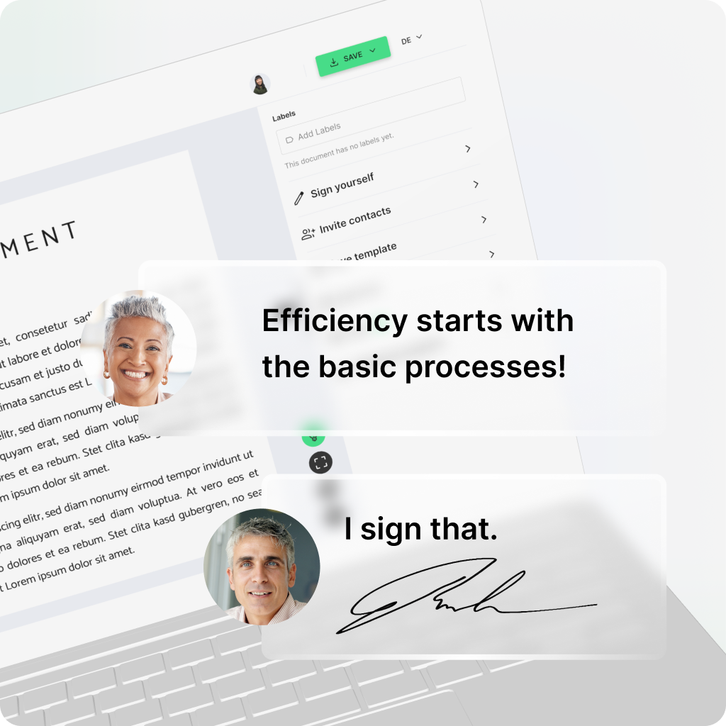 - Analogue contract processes mean paper and printing costs, personnel costs, superfluous appointments and travel. Both economically and ecologically, measurably resources are wasted. Evaluate the potential of your use case yourself in 3 minutes.