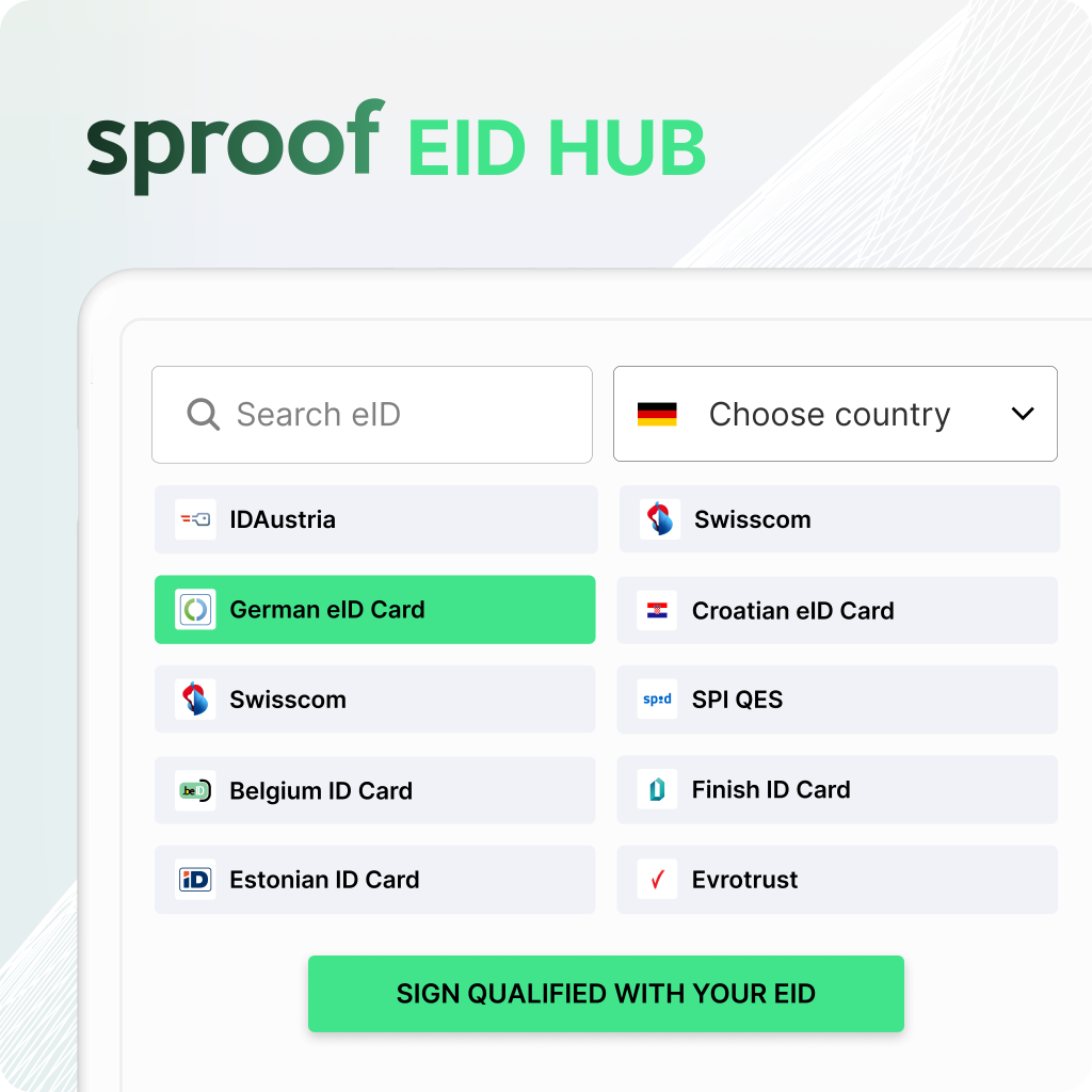Liitäntä tärkeimpiin eID-palveluntarjoajiin, jotka tarjoavat päteviä sähköisiä allekirjoituksia ja turvallisia henkilöllisyystarkastuksia koko Euroopassa.