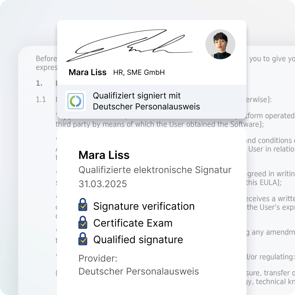Optimiert für Branchen mit kritischer Infrastruktur und hohen gesetzlichen Anforderungen bei rechtsverbindlichen Unterschriften auf Standardverträgen